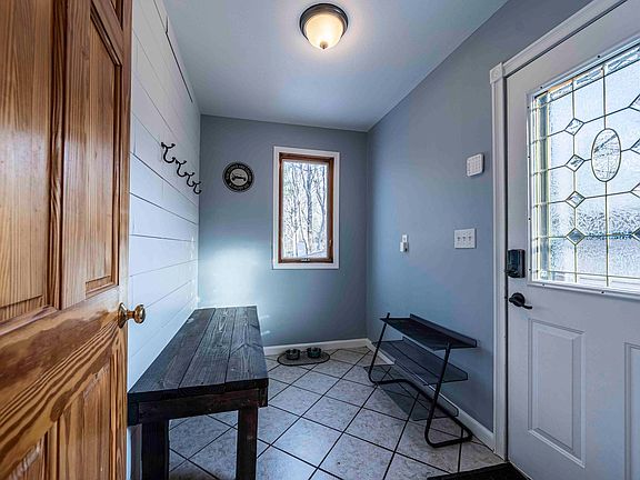 Stepping in from the deck, you enter a mudroom that once housed the washer and dryer for an easy conversion if you choose to switch it back. From the mudroom, you move into the kitchen, featuring custom hickory cabinets, granite countertops, and plenty of space for all your cooking/entertaining needs. Beyond the kitchen, the dining room opens into a welcoming living area anchored by an impressive two-story fieldstone fireplace. Look up to admire the vaulted ceilings and the staircase leading to a spacious bedroom/loft, perfect for additional sleeping space or recreation.