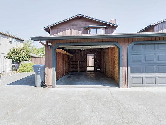 Enjoy carefree living in this lovely move in ready 1184 sf, 2 Bedroom, 1.5 Bathroom Condominium. Updated Kitchen includes custom self-closing cabinets, granite counters & stainless appliances. Custom wood blinds and laminate flooring in Living Room /Dining Area and Kitchen. Remodeled 1/2 bath with granite countertops and laundry on main floor. Upstairs there are 2 ample Bedrooms with vaulted ceilings, Jack and Jill bath, walk-in closet in the Primary Bedroom, Skylight in the Stairwell. Private fenced patio with a partial overhang with kitchen access provides additional space for outdoor living/entertaining. 1-car detached garage with shelving and automatic opener provides secure parking/storage. This unit is located in the back of the complex and affords maximum privacy. HOA fees include water, sewer, exterior property maintenance, repairs and landscaping. Close to the Grants Pass Shopping Center and Public Transportation.