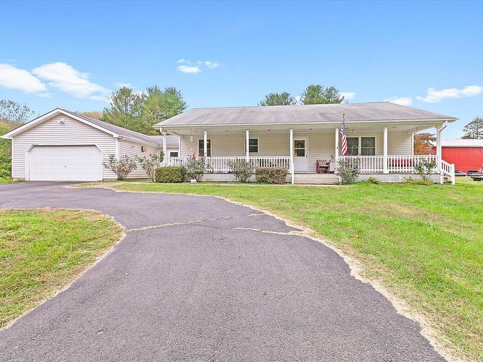 Charming one-owner ranch home built in 1998, just minutes from I-81 yet offering a peaceful retreat on 1.25 acres. The inviting front porch welcomes you to this well-maintained property, featuring custom kitchen cabinets, a large attached garage, and an unfinished basement for added potential. The heat pump was installed in 2021 and a gas water heater in 2017. The fenced backyard includes a separate section with a barn and shed--perfect for storage or small animals, as the owners once had a mini horse. While the home may be a little dated in some areas, it has been lovingly cared for. All information is deemed reliable but not guaranteed and should be verified by buyer or buyer's agent.