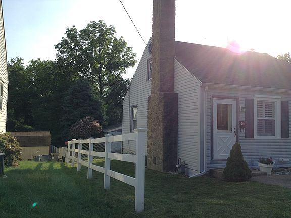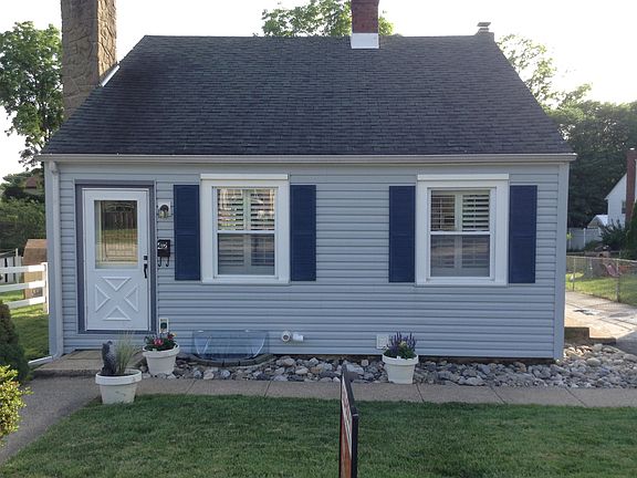 Welcome to this quaint cape cod situated on a nice size lot with a tranquil stream in the back of the property, great to sit out with your morning coffee and listen to the sound of the stream running by, so relaxing. Located on the lot is an amazing over-sized 2 car garage with an electric door opener, so if you want to set up a workshop, craft room, space for your classic cars, or just use it as a storage area. There is a separate heating unit for the garage but it does need some work, it hasn't been used in a few years. The driveway can accommodate another 5-6 cars, or has plenty of room to park your boat or trailer. Inside you will find a retro style kitchen that was updated with 42" cape cod cabinets that go to the ceiling, Corian counter tops and a extra deep seamless sink. The living room has a cozy brick gas fireplace complete with a Tennessee marble mantle and the 2 bedrooms on the main floor have bamboo flooring. The entire first level of this home has beautiful white plantation shutters. The upper level is used currently for multiple purposes,, one half is used as a bedroom and the other half as an office., a double window dormer makes for a nice sitting area. There is tons of storage on the second level including an extra large cedar closet, and 4 additional storage areas. The basement was completely waterproofed . and is divided into 3 separate rooms, a playroom/rec room,, storage room and laundry room., they had a custom made Dutch door installed that leads into the laundry area , another unique feature to this house. The house had new siding installed in 2009 and also boosts an energy efficient on demand tankless water heater, no running out of hot water here!!!. The house is tucked away in a quiet neighborhood, but is convenient to just about everything, shops, restaurants, drug stores, etc. For your travel convenience the 1-95 exit is within a mile or so, and the airport is 4.5 miles away.. look no further, this house has it all.. Put this on your list of MUST SEES!!!!