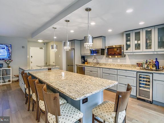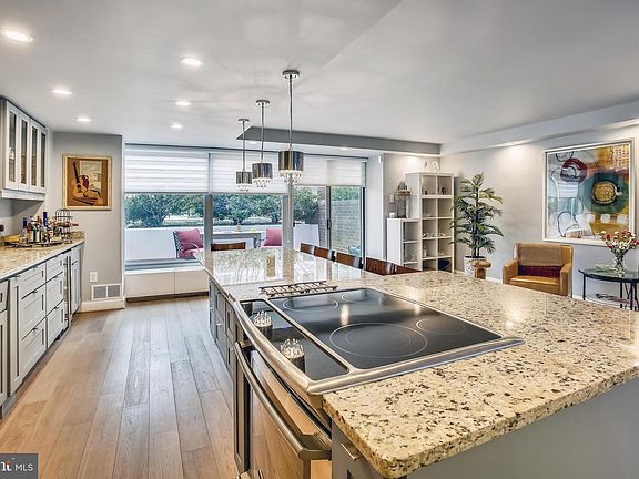 Price improvement. A rare split-level SW condo with private 14 ft x 18 ft patio on first floor and a small balcony off the master bedroom on the second floor. This unique 2 story two-bedroom, one and a half baths condo, has new double pane windows, sliding patio doors and single door upstairs off the balcony with an additional window added for more airflow in the master bedroom. New recessed lighting on both floors and staircase. This unit gives a warm, airy feeling due to the open floor plan allowing for ease of entertaining guest inside and out. The first-floor features wood flooring and sound barrier walls. The kitchen features all stainless-steel appliances that include a double sink, Fisher Paykel 2 dish drawers, Electrolux Induction stove, microwave, LG slim refrigerator, dual temperature beverage cooler, soft close cabinets and drawers. The wall mounted fireplace and drop chandelier lights to add a little bling while showing a festive spread for two to thirty people on the long all-purpose granite table. The table is approximately 8.5ft L x 3.5 ft wide x 3.5 ft H and providing comfortable seating for 6. This unique table can be used as a prep space, display a massive food spread or an intimate space for two to dine. There is so much kitchen storage, along with a walk in under the staircase. Both upstairs bedrooms have large closets, and the master bedroom has 2 closet that are long and deep. There is a hall closet and a linen closet with a LG combo washer dryer conveniently located upstairs. The main bathroom has been updated with easy to clean slate tile. A balcony is right off the master bedroom so you can sit outside and enjoy a little fresh air, sunshine and relax. The unit conveys with an assigned indoor garage parking space, a large storage unit located in the basement storage room. There is a separate bike room for owners' bikes. The buildings laundry room and community rooms were recently updated. There is a Guest parking lot on the property with spots available on a first-come, first-serve basis. The building's common areas are all being renovated with fresh paint, new carpet, lighting fixtures, and decor, as well with a security system featuring security cameras, keyless fob entry. Being paid for with the present reserves. A new state of the art fire alarm system was recently installed with audible boxes located in each condo unit. Conveniently located between The Wharf and Navy Yard, this condo building offers amazing privacy and tranquility at the end of a cul-de-sac. The Waterfront Metro stop (Green Line). Expansive green space and waterfront views of the Potomac River are a short walk away. This is a pet friendly building. Prime location in walking distance to the Waterfront Metro, Safeway Grocery, CVS Pharmacy, neighborhood restaurants, open air farmers market on the weekends, Potomac River, Haines Point, SW Wharf, famous SW Fish Market, Arena Stage, Audi Soccer Stadium, Nationals Baseball Stadium, Navy Yard and much more,! "Ready to Turn the Key"