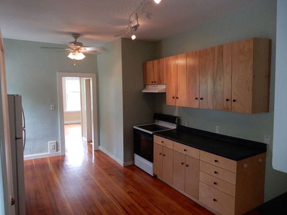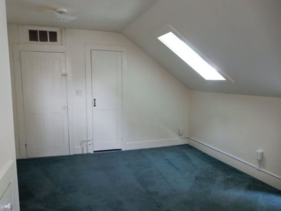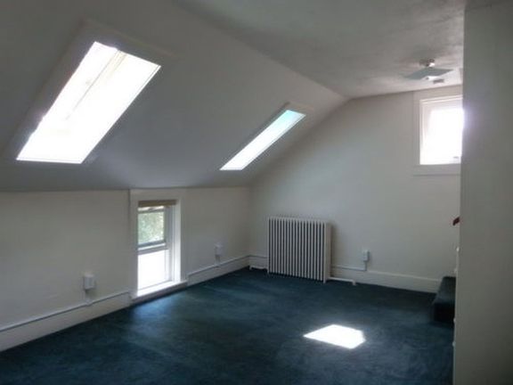 Fir floors run the length of the original brick house, spanning the living room and kitchen. The morning sun through three large windows and 10 foot tall ceilings give the living room an expansive feel. The large sunny black and white tiled eat-in kitchen has an abundance of storage and counter space. The black and white tile theme is carried through into the bathroom with full tub and shower. Storage closet in bathroom. The apartment has an office with our beautiful view. Through the office, one enters the skylit cozy bedroom with a 200 year old walk-in cedar closet. Electricity is paid by tenant.