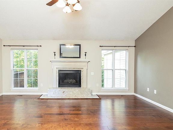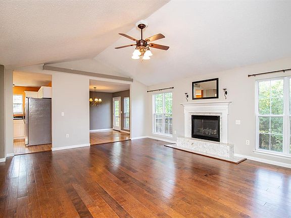 Spacious ranch home with private backyard (woods and wildlife on two sides of home). This darling ranch home offers three main floor bedrooms and two baths, with an additional bedroom in the walk-out lower level. Two car oversized garage with concrete driveway on a quiet street. This home features white kitchen cabinetry, breakfast bar and eat in kitchen and dining area. The master suite is oversized and includes a walk-in closet, large soaking tub, shower, double vanity and plenty of room for king sized furniture. Vaulted ceilings, a gas fireplace, hardwood floors, and more all add to the charm of this home.