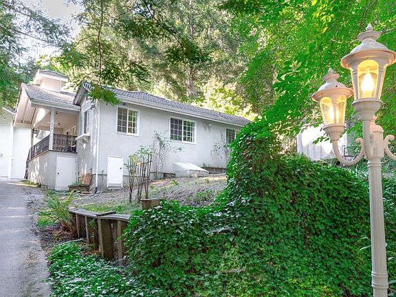 Private single family home in the country loaded with extras. Chef kitchen with Viking six-burner range, griddle and double ovens, stainless steel vent hood; Frigidaire refrigerator/freezer; Thermador Professional warming ovenKitchen-Aid dishwasher, wine refrigerator, compactor. Formal dining room plus kitchen island eating area. Fireplaces in living room and roomy master bedroom. Wood floors in living and dining rooms. Office with built-in desk and cupboards. Forced air heat and air conditioning. Central vacuum. Attic and cellar storage. Garden/workshop room. Entertainers' spacious rear deck with double French door access from living room. Easy care stucco exterior; custom wrought-iron railings to main entrance. Large 27,965 SF lot. Deer-fenced garden area. Potential guest house above garage. Easy commute via Bear Creek Road.
