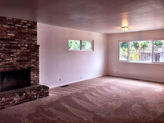 Delightful... Is the best way to describe this shiny & ready to show property! Attractive curb appeal, super clean! 3 Bedroom, 2 bath, new interior paint & carpet, new laminate in bathrooms. Kitchen & dining area open to each other, breakfast bar, well maintained tile counters. Beautiful brick, wood burning fireplace. Spacious bedrooms with generous closet space, hardwood floors show in the closets. Newer windows & tidy front and rear yards with extra cement parking space in drive. Delightful!