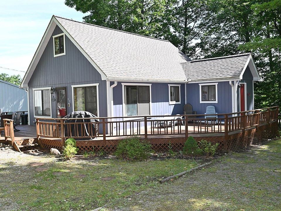 Welcome to your lakeside retreat on Higgins Lake! This charming chalet offers comfort and convenience, with a renovated kitchen to inspire culinary adventures. The spacious living area, filled with natural light, provides a cozy ambiance for relaxation or entertaining. Freshly painted wood exterior and a newly stained deck enhance curb appeal. The versatile loft is perfect for a den, office, workout space, or extra sleeping quarters. Located on a dead-end street, enjoy privacy with nearby parks and lake access. Boat launch facilities and ORV trails are close for outdoor adventures. Schedule your viewing today!