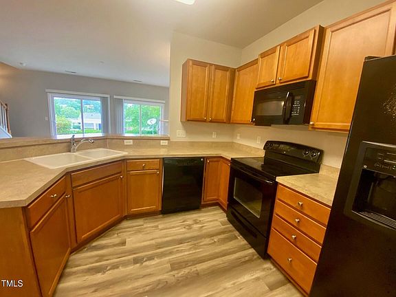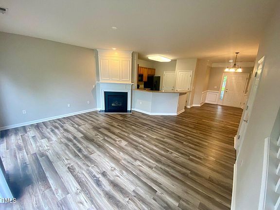 Stunning townhome that boasts 3 bedrooms 2 1/2 bathrooms, first floor has luxury vinyl plank flooring throughout, spacious open floorplan, large family room w/gas log fireplace, separate dining room with lots of natural light. Second floor features carpet, washer/dryer, all bedrooms and 2 full baths. Primary bedroom with tray ceilings, WIC and primary bath with dual vanities! Convenient location to RTP,HWY 40, Shopping and Restaurants. A must see!!