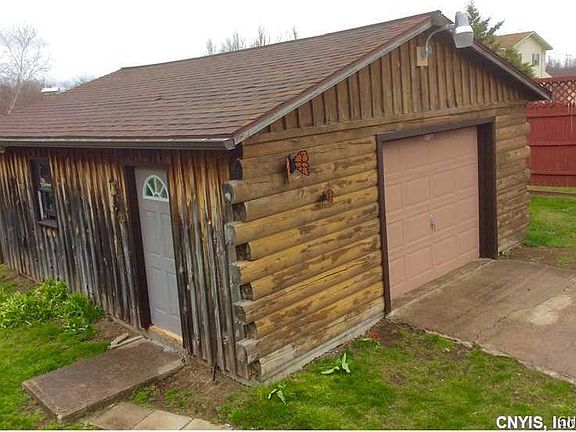REDUCED!!Gorgeous Cedar Log Home boasting with rustic charm! A combination of natural wood & cathedral ceilings highlights this hidden gem! This meticulously cared for log home offers an open concept and spacious floor plan plus a full basement that provides room for laundry ,workshop, play area for kids and plenty of storage space. Enjoy the warm summer nights on the front porch and beautiful covered back porch overlooking the private back yard. Privately nestled at the end of street and within walking distance to Village Park & Baseball field!10 mins to Watertown 20 to Fort Drum! Call today!