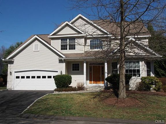 Enjoy 2350 square feet of gracious living space in this gorgeous young 2+ bedroom, 2.5 bath colonial loaded with quality upgrades in "Governor's Ridge" condominium in the Tashua area of Trumbull. Situated in one of the best and most private locations in the complex, the exterior is enhanced with vinyl siding, prof. landscaping, 2 car attached garage, thermo-pane windows, charming front porch, patio overlooking picturesque backyard with babbling brook & wooded back-drop. The tastefully decorated interior boasts an open floor plan for entertaining; oak hardwood floors; recessed lighting; an inviting formal living room with bay window, elegant formal dining room, striking custom cherry eat-in-kitchen with huge breakfast bar & granite countertops, dining area with bay window, and dramatic family room with vaulted ceiling & gas fireplace. The second level has a luxurious master bedroom suite with huge walk-in closet, lavish master bath with granite countertops and Kohler whirlpool tub, a second bedroom with extra-large walk-in closet, cozy office, neutral main bath with granite countertops, and laundry hook-up. The expansive unfinished lower level offers plenty of space for future expansion and storage. Very convenient location: close to schools, shopping, recreation areas, and major commuting routes. Tashua Knolls Recreation Area boasting an 18-hole golf course, new 9-hole executive course, clubhouse, tennis and basketball courts, outdoor pool, and playground is located nearby.
