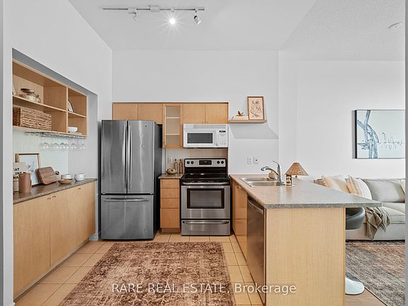 Welcome to Aqua Condos, a prestigious residence perfectly located on Torontos vibrant waterfront. This bright and spacious 1-bedroom suite offers 600 sq. ft. of thoughtfully designed living space with 9-foot ceilings and floor-to-ceiling windows that fill the home with natural light. With stunning views from every room, this suite combines comfort, style, and convenience in one of the citys most desirable communities. The open-concept kitchen, dining, and living areas create a seamless flow, ideal for both everyday living and entertaining. The kitchen features stainless steel appliances, ample cabinetry, and a breakfast bar with space for stools. The generous living and dining area offers plenty of room to host friends or enjoy quiet evenings in, with views of the CN Tower from the dining table. Step onto your private balcony to sip morning coffee or relax with a glass of wine while overlooking the city and lake. The spacious bedroom includes excellent closet space and large window that continue the homes bright and airy feel. A beautifully upgraded 5-piece bathroom, complete with a glass door and a tiled shower and a soaker tub, provides a spa-like retreat and is conveniently located outside the bedroom. Freshly painted throughout, the suite also comes with one parking space and one locker for added convenience. Residents of Aqua Condos enjoy a well-managed building with all-inclusive maintenance fees covering utilities. The amenities are hotel-like, featuring visitor parking, a gorgeous rooftop terrace and party room with exceptional views of the city and lake, a fully equipped gym, and so much more. Suites here are rarely available, thanks to the exceptional lifestyle offered. Perfectly situated on Queens Quay, youre just steps from the Harbourfront, waterfront trails, restaurants, shops, and TTC at your doorstep. This is downtown lakefront living at its finest! Dont miss your chance to call Aqua Condos home!