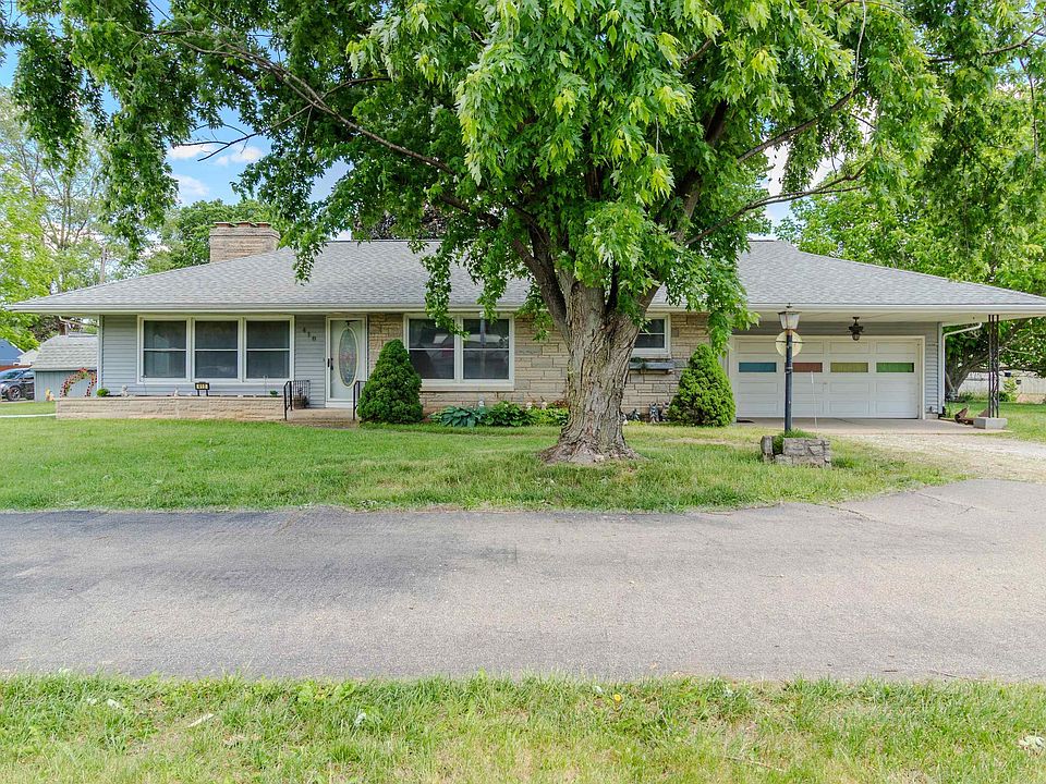 Charming and Spacious Ranch on Over Half an Acre! Welcome to this beautifully maintained 3-bedroom, 1.5-bath ranch offering over 2,600 square feet of space. Situated on a generous 0.58-acre lot, this home features a 2-stall garage, carport, and a newer garden shed—perfect for all your storage needs. Inside, you’ll find a light-filled living room, sizeable kitchen, and a formal dining area ideal for entertaining. Each bedroom offers ample closet space, with the primary bedroom boasting dual closets and the secondary bedrooms featuring built-in storage. The full basement expands your living options with a rec room, a workshop, kitchenette, laundry area, and a bonus room ready for your personal touch. Recent updates include a newer roof, windows, siding, reverse osmosis system, and a Culligan water softener. Ensuring peace of mind and modern convenience and provides easy access to the interstate and local amenities, this home offers both comfort and convenience! Don’t miss your chance to own this spacious and versatile home!