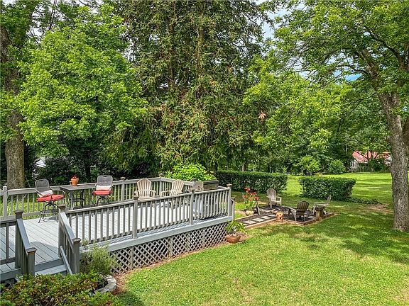 Welcome to true southern charm, where history meets modern elegance. Upon arrival, you will notice this home's impressive curb appeal and well manicured lawn. A walkway lined with flowers in full bloom lead to your front porch; welcoming you to rest with a glass of sweet tea and enjoy company. Once inside you will notice an expansive foyer boasting 12' ceilings, beautiful hardwood floors, and original beadboard and wainscoting for a warm and welcoming feel. A wide doorway opens into the spacious dining room, featuring original shiplap walls and a wood burning fireplace; an ideal space for entertaining and large family gatherings. Next is the recently updated kitchen with custom center island, stainless appliances and plenty of countertop and cabinet space. Double windows overlook the private backyard to enjoy natural light when preparing a meal for your family. The dining room is the heart of the home as it also opens to the spacious living area with vaulted ceiling, large windows and relaxing atmosphere. This home features four large main level bedrooms. A jack and jill bathroom connects two of the bedrooms while your master suite is privately located at the back of the home and features built-in shelving, exterior access and a recently updated bathroom. A newly remodeled laundry room and mudroom are conveniently located off the kitchen with large windows overlooking the backyard and access to the spacious back deck and fire pit before opening to a level back yard filled with shade trees and fruit bearing trees including peach, fig, blueberry, and raspberry. The .79 acre lot is level and has a large backyard for kids to play as well as raised garden beds with summer ready tomatoes. An outbuilding is located in the backyard for additional storage needs and serves as a workshop currently. This home features a second level bonus space with interior stairway access and a separate exterior stairway for added options. This flex space is currently used for storage and is unfinished with a window air conditioning unit. There is potential for additional living space if finished to be a separate apartment or home office if desired, as it is plumbed for a half bathroom and was previously used as a recording studio. This home provides the space you need with the features and attention to detail you want. Many recent updates include hardwood floor refinishing, fresh paint, new lighting and plumbing fixtures, hot water heater (2020), exterior wall insulation, and full remodel of the laundry/mudroom. In 2008 new insulated windows were installed as well as new electrical and plumbing and HVAC/ductwork replacement adding to the home's thermal efficiency. Most rooms have hardwood floors and there are hardwoods under the carpet in rooms that have carpet. This spacious, turn-key farmhouse features an easy flowing floor plan with lots of natural light, beautiful hardwood floors, and craftsman features throughout. Its beauty must be seen in person to truly appreciate the details and character.