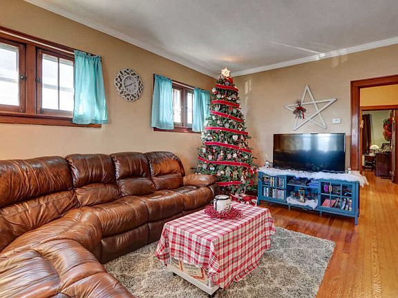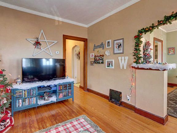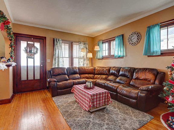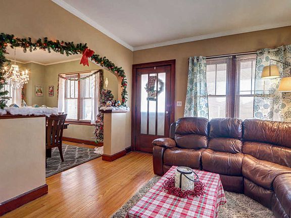 Welcome to this charming 2 bedroom, 1 bathroom home with a fully finished basement and a detached garage. Upon arrival you will notice a big front porch that is great for enjoying those cool summer evenings. When entering you will find a spacious living room that boasts beautiful hardwood floors, crown molding, several windows to allow for tons of natural light and is open to the formal dining room. The formal dining room has a peaked arch entry and triple window w/ stained wood window seat and crown molding. The eat-in kitchen has vinyl flooring, glass front cabinets, a pantry and peaked arch doorways as well. The two bedrooms are generous in size are on the main level. The bathroom offers deep drawer built-ins and once again a peaked arch over the bathtub which adds charm. Downstairs is a fully finished basement that can be utilized in so many different ways. It's currently used as a family room, game room, office and laundry. There is plenty of storage space w/ three wall closets and another separate closet. There is a nice sized back yard with a privacy fence. There is also a detached two car garage. The seller is providing a 1 year AHS home warranty for the buyer's peace of mind.