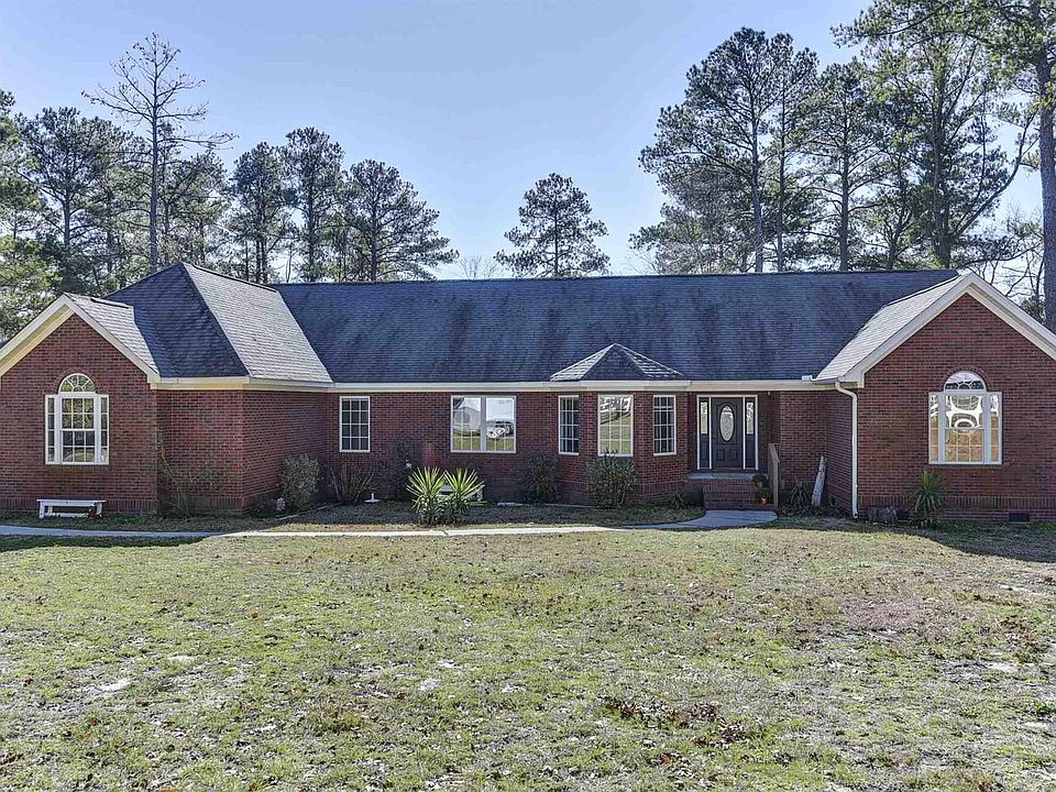 Looking for a one-story, all brick home on acreage with a private pond? Or need a place for your horse? This home has it all! Spacious home with private office, fireplace in great room and the master suite! Gourmet kitchen with herb window, gas stove, granite counters, large walk-in pantry, and a large island. All paint and appliances are 3 years old or less. Master suite has French doors to the large deck, sitting area and jetted tub with separate shower. Tile floors in foyer, kitchen, and laundry room. Fish in your stocked pond with a view out of every window on the back of the home! Or ride your horse around the beautiful property. Fenced area with shed, round bale feeder, and fans for your horses.