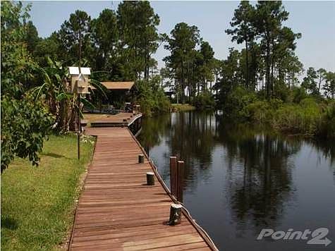 Been looking for that quiet, serene waterfront getaway with the boat dock right out your backdoor? Well, this is the house for you. Incredible expansive views over picturesque sawgrass of the canal, Herron Bayou and Perdido Bay come with this 2/2.5 getaway. Open living area with wood burning fireplace, dining area and kitchen with spacious deck made to take advantage of the beautiful view. Bedrooms have Pergo flooring. Two car side entry garage with ample shop area. Ground floor includes laundry room, 1/2 bath and the extra Florida room area. Alarm system, well pump for sprinkler, storage building and power at the dock.