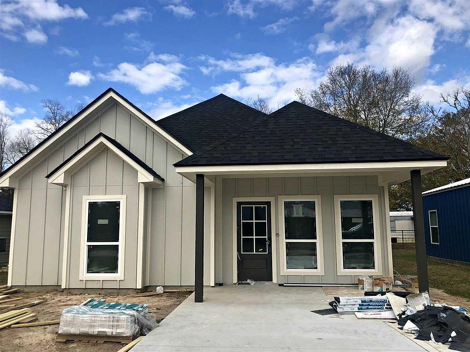 New construction in HJ-ISD located on a dead-end street! This 3 bedroom home has a farmhouse look with the popular Hardie board &batten on the exterior. Vinyl plank flooring throughout. High ceilings in living room and kitchen with open concept. The kitchen has an island featuring a sink and lots of storage. Custom shaker cabinets with quartz countertops & microwave in drawer! Master has full bath. LED lighting throughout with energy efficient windows. All electric home with city sewer/water. Seller will be installing sod in the front and partial back plus a privacy fence along the back. Call today to set up your private showing!