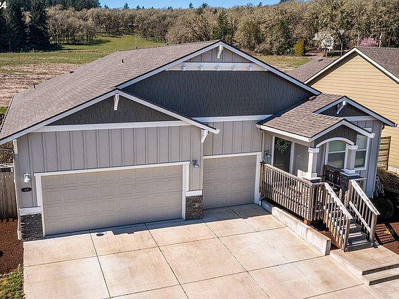 Enjoy the peace and tranquility of small town living in a gorgeous 2019 built home. This spacious 1,878 square foot, 4 bedroom, 2 bathroom, 3 car garage beauty in Monroe is neighborhood living meets pastoral countryside lounging. Stunning quartz counters in the open concept kitchen to dining area. Gas cooktop in oversized island. Stainless steel kitchen appliances all included. Please don't miss the pantry! Charming arched entry into the living room. Rest and relaxation await in the primary suite. Large primary bedroom with tray ceiling and fan. En suite bathroom with double sinks, walk in shower and soaking tub. 2 additional bedrooms for guests and 4th bedroom currently being utilized as a den. Dedicated laundry room located by the entryway drop zone where you can keep floors clean and shoes organized. Western facing views from the back patio provide both privacy and a rural feel. The 3-car garage affords both storage and vehicle protection from the elements. This home is the full package!