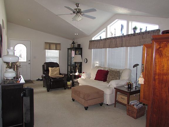 (619) 401-4082. Lily Pigg, Lily's Mobile Homes. MUST SEE THIS BEAUTY!!! Land fee $715 a month. 1,344 Sq Ft Manufactured Home in senior community. Vaulted Ceilings, lots of upgrades. 3 orange trees on property, porch in front, master bedroom has chandelier, master bath with double vanity sinks, garden tub, walk-in shower, walk-in closet with shelving. 2nd bath has handicap grab bars. Both baths have high toilets. Kitchen has island with electrical outlet, pot rack above, tract lighting and pull out drawers. All appliances in kitchen are upgraded, no disposal but electricity is in place for installation. Side by side refrigerator has in door ice and water dispensers. BUC001657AZA/B. www.LilysMobileHomes.com