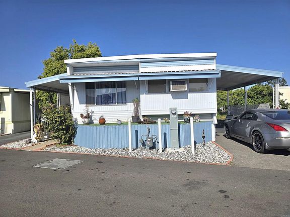 Look no further!!! Welcome home to this beautiful 1 bedroom/1 bath home in the 55+ community of El Cajon Valley! You never run in to a 1 bedroom with this much space at 1040 sq ft!!! This is a double wide home with lots of open interior space and room to enjoy your home and stretch out!! Gorgeous flooring, roof 5 years old and exterior patio areas, parking areas and a shed that stays! A huge kitchen, a master suite with tons of closet space and attached bath, jack and jill style so visitors can still access. Planning a get together? You can have lots of fun entertaining here! Community has laundry, a car wash area, shuffleboard and the pool. Lots of conveniences and freeway close. Space rent is only $1150/mo and park approval will be a requirement to purchase. A second occupant can be as young as 45 years old. Don't miss out on taking a look at this home today!!!