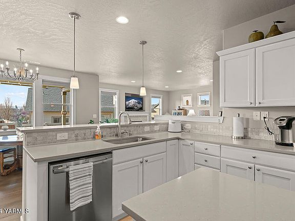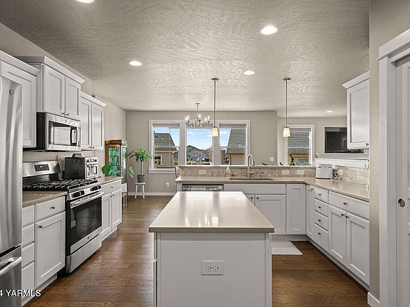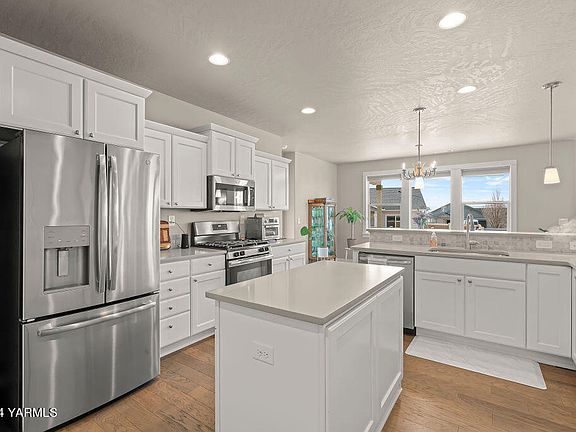 Welcome to luxury living in this pristine 2018-built home located in a secure 55+ gated community in Terrace Heights. This meticulously maintained home offers a retreat for those seeking a lifestyle of ease and comfort. Step inside to discover a welcoming den or 4th bedroom with French doors to your left. To the right of the entrance, you'll find two bedrooms with a full bath, perfect for accommodating guests. The wide hallways lead to the heart of the home - an open and sunlit living space with ample natural light. The well-appointed kitchen features a gas range, convenient eating bar, and a spacious central island. The living room boasts an inviting atmosphere, complemented by plenty of large windows and a cozy gas fireplace. Tucked away in the back corner, the primary suite offers privacy, complete with an ensuite bathroom and a spacious walk-in closet. Immaculate condition, thoughtful design, and exclusive community perks make this property most ideal for those seeking the best in 55 and older living.