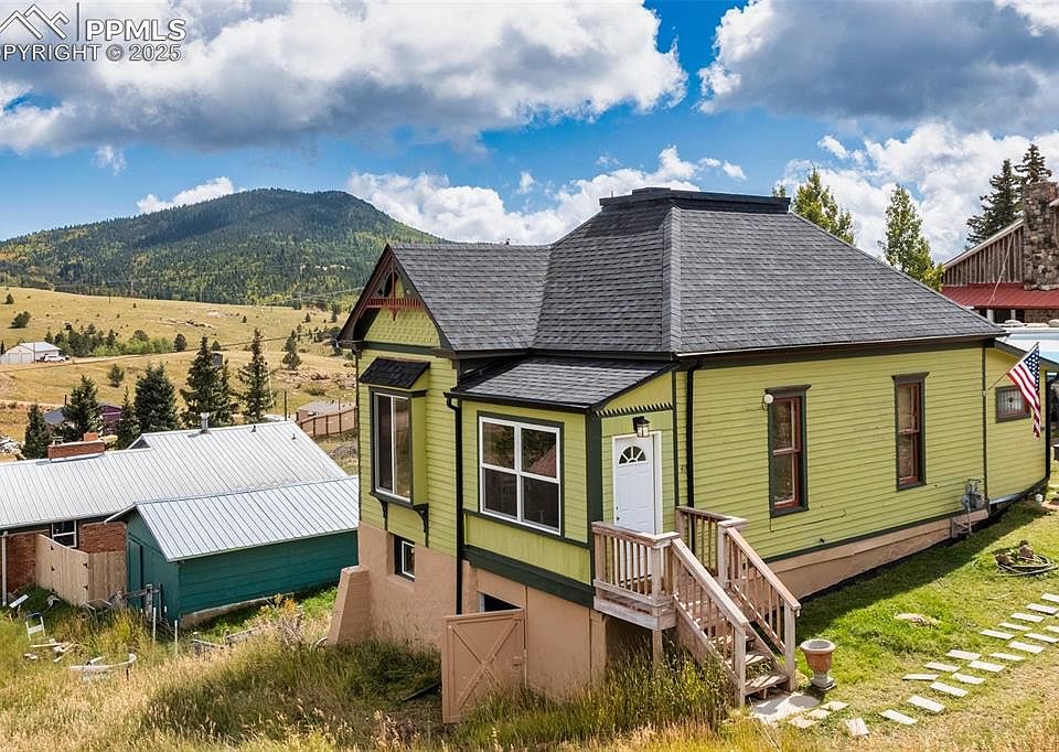 This is a classically restored 1900s Victorian home that offers a rare opportunity to be in a prime location just blocks away from the historical downtown area of Victor, CO, but also provides a spacious mountain view for your mountain retreat. This is a 2-bedroom/office,1-bath home that offers the perfect blend of small-town classical charm and functional living, with 10-foot ceilings and ornate wood trim, ensuring that the home's historic soul remains intact. The design of the front room could be ideal as a master bedroom or as a spacious office, with its newly updated, large front window. Step inside to a bright and inviting floor plan (both refurbished and original wood flooring), featuring a cozy living area, an efficient kitchen with ample storage, and comfortable bedrooms. This home has extensive renovations and highlighted features: Brand New (2025) roof Upgraded electrical throughout house Updated insulation of all main level walls for optimal heating and new heater New plumbing (including in-ground-to-street connection and sewage) Serene enclosed patio A walk-in basement of 736 square feet with potential to add extra bedroom, or storage area, or workshop.... A large backyard and view of the historic Victor area. Ideal for outdoor projects, pets, play, and lifestyle needs. This property is unique in that it has space but is also just blocks away from Victor's downtown area. Enjoy the best of mountain living while still being within commuting distance to Cripple Creek, Woodland Park, and Colorado Springs. Whether you’re looking for a full-time residence, a perfect mountain getaway, or an investment opportunity, this home provides an excellent foundation in a growing community.