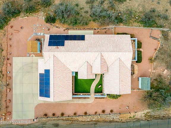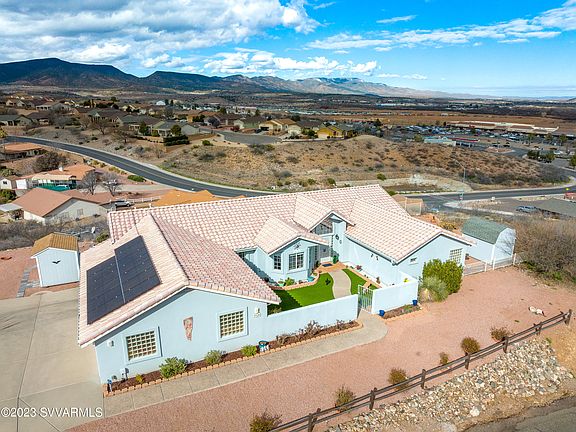 Camp Verde, centrally located close to town, has panoramic views of mountains. Beautiful home with split floorplan. Open living room. Kitchen features breakfast bar, island and built in sitting area. Enjoy the formal dining area & private outside court yard and patio. Virtually no electric bills, with owned solar system.