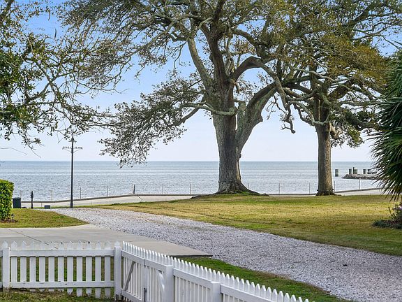 Just steps from the Beach and Old Town this beautiful home with stunning views of the Bay is a must see! Built by Garcia and Sons this home has custom built kitchen cabinets, quartz counter tops, eat in kitchen with a custom antique pine counter top, stainless appliances, beaded board ceilings and ship lap walls, heart pine floors accentuate the coastal living this home as to offer. Ground level master bedroom, spacious master bathroom with his and hers vanities, claw foot tub and large master shower complete the bathroom. Two large bedrooms and sitting room upstairs both have water views. Operable custom shutters, old chicago brick pavers cover the entire wrap around porch with copper lanterns located at the front door. This home is professionally decorated!