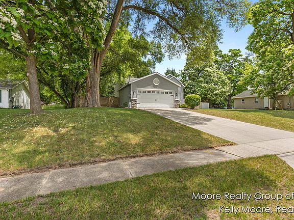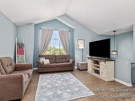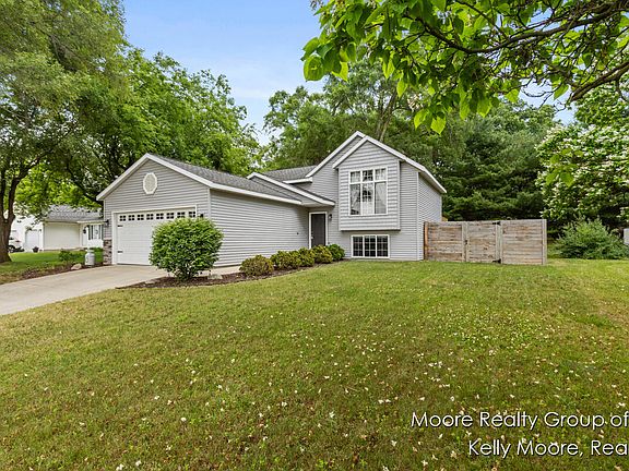 Meticulously maintained, bright and inviting open concept with soaring vaulted ceilings make this home a must-see! The kitchen has newly painted cabinets and is equipped with a center island-all appliances included. The interior is fresh and clean, complemented by new laminate floors throughout the main floor and newer carpet in the family room . Generously sized bedrooms and updated bathrooms make this move in ready. The exterior features maintenance-free vinyl siding, 2 stall garage, a huge deck, and brand-new custom fencing surrounding a spacious back yard. Cedar Crest Elementary, Danish Kingdom, Greenville Community Center, and the Flat River Trail are all within walking distance. New mechanicals include Hot Water Heater and A/C, both within the past 2 years. This move-in-ready home is a perfect blend of modern updates and practical design! You don't want to miss this gem in the heart of Greenville!