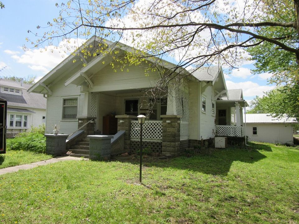 Contingent offer accepted. On the market for back up offers. You must see this solid 1900's, 3 bed, 1 bath home. It is structurally sound and has beautiful woodwork and an extra wide 42" front door. You will love the 10 ft ceilings bordered by beautiful crown molding. the two built-in mirrored buffets add to the character of this home. The bedrooms are spacious and the 3rd bedroom is the laundry room is large enough to also be a sewing room or office with closet for storage. Two detached garages and the vacant lot across the street are included. Sit on one of the two covered porches and enjoy this small town living. Contact us for your private showing today!