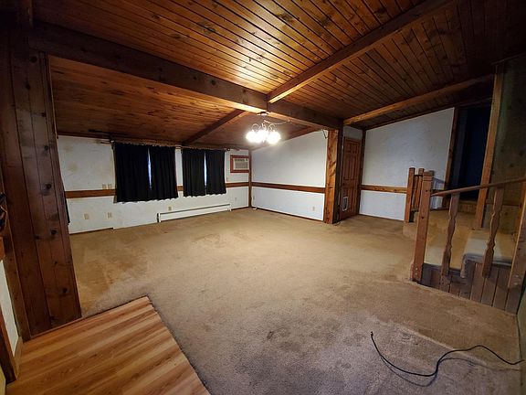 2 bedrooms and 2 full bath home close to the park and ball field. New decking and rail in back. Steel roof is approximately 7 years old. Rubber roof is 3 years old.. Knotty pine ceiling in living room. 3 wall air conditioners will stay with house. Jacuzzi tub in basement bath. Electric heat. Wood burning stove in basement is as is.