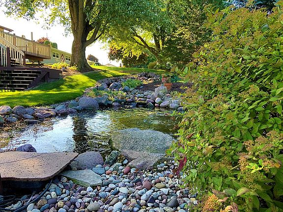 Charming 2-3 bedroom Ranch home, immaculately cared for, with numerous updates: Oak hardwood flooring in Living Room, hallway, & Dining Room, new (formerly bay), rectangular window in Living Room installed, remodeled Bathroom in LL & professional landscaping applied outside, just to name a few! Beautiful glass doors in Master Bedroom lead to outside deck, which runs along west side of home; also provides entrance to 4 Season Room! Kitchen contains lovely glass cabinetry & coordinating center island, with seating area. LL contributes spacious Family Room, former Spa area transformed into Meditation Room, non-comforming bedroom, Kitchen area, walkout doors, which lead to lovingly maintained Koi pond in backyard. Three stalls-worth of garage & overhead storage area provide plenty of room for vehicles, toys, etc. Let the photos speak for themselves, here; this home has been wonderfully cared for & maintained inside & out!