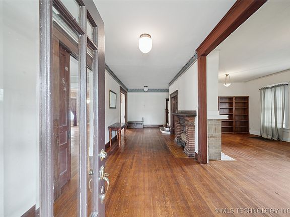Welcome to this beautiful and spacious home featuring a brand NEW roof and plenty of room for everyone! This 5-bedroom, 2-bath home offers two large living areas and 3 fireplaces, a formal dining room, a butler's pantry, and a bright sunroom. You'll love the gorgeous original woodwork, built-ins, real hardwood floors, and soaring ceilings that create a light and airy ambiance throughout. Classic charm with many original design elements and fixtures still intact, showcasing the unique character of the home. The spacious hallways and thoughtfully designed layout provide a comfortable flow. Outside, enjoy a covered front porch, mature trees, and a backyard with two storage buildings. A carport with alley access is located at the rear of the home and is accessible via a shared driveway.