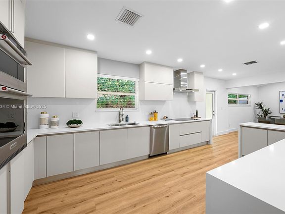 Exceptional fully renovated waterfront residence located on the exclusive gated island of Normandy Shores.This 4-bed 3-bath home combines elegant design with modern comfort, featuring a stunning open floor plan ideal for entertaining. Soaring 15ft vaulted ceilings in dining area, while the expansive, updated kitchen includes a breakfast area/family room, perfect for everyday living. Primary suite offers his/hers closets and a serene, spa-like bathroom. With 3,248 sqft of luxurious living space set on an 11,050 sq ft lot. This property offers 65FT of waterfront with access to Biscayne Bay. Best priced waterfront home in Normandy Shores! The Normandy Shores island offers world-class amenities, including an 18-hole golf course, tennis, Basketball & 24H gated security with on-site attendants