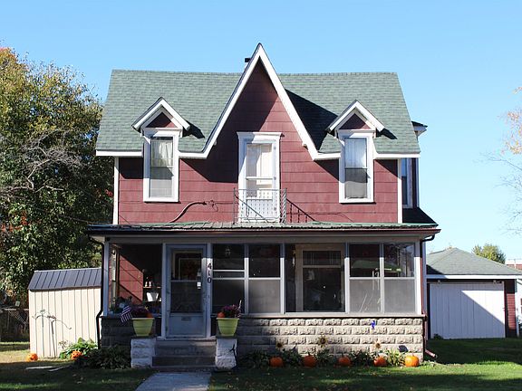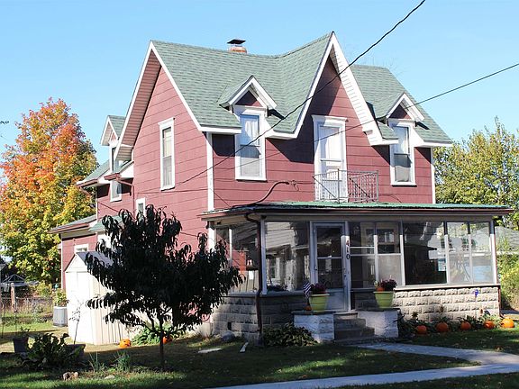 This home features natural woodwork throughout, original hardwood floors and offers a lot of natural lighting that accentuates the stained-glass windows made by a local artist. The home has a spacious living room, 4 bedrooms, 2 baths, a front and a rear enclosed porch. The kitchen was remodeled in 2017. Appliances included in sale. Home features NG forced air heat, central air, fenced yard, detached garage, metal shed and a peach tree. This beautiful historic home is situated close to Trine University, downtown shopping, theater, restaurants, library and the walking/biking path. A 1 year home warranty is included with the sale.