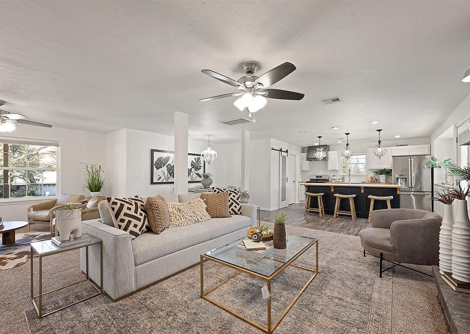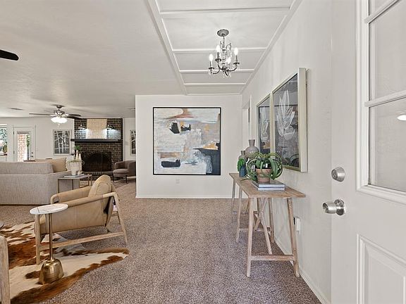 This move-in ready home is nestled on a rare .64 acre lot and conveniently located in the Glendale Acres Addition. This home has been freshly renovated with a crisp modern look. Updates include new flooring throughout, fresh paint, countertops, carefully selected fixtures & many other upgrades. At the heart of this home, you will find a functional and stylish kitchen with brand new butcher-block countertops, white farmhouse sink, new appliances, custom vent hood, pantry with sliding barn door and convenient island with breakfast bar. Living room features a timeless brick fireplace situated across from the open concept kitchen. The design flow creates a perfect atmosphere for new memories to be made at the center of your new home. The master suite provides a serene retreat, with two closets, and an en suite bath with walk-in shower. Outside, the substantial front, side, and back yards offer endless possibilities for entertaining, gardening, and enjoying the open space. As a bonus, the extra long concrete driveway and two car garage provide plenty of space for multiple car parking. Location of this home is perfect for anyone searching for a peaceful neighborhood full of mature trees while remaining only minutes away from many restaurants, great shopping, Tinker AFB and easy access to I40. Schedule your showing today!