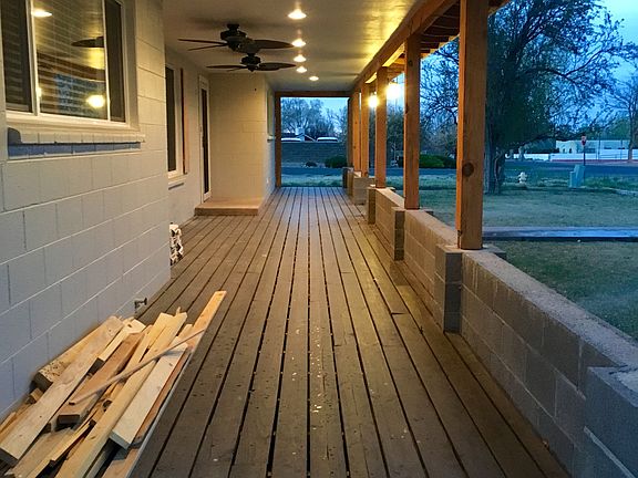 Great single family home close to schools and 2 blocks from pool and park. Three Bedrooms, two baths with an open floor plan. Solid oak flooring with tile in the kitchen, subfloor heated kitchen and laundry tile, newer appliances, and new central air/heat. All new windows, new roof, and a 600 sf covered front porch. Beautiful lawn with sprinkling system, mature shade trees and a few fruit trees in the garden area. Sprinklers run off of the WELL! Nice detached garage, chicken coop, and shed in the fenced in back yard.