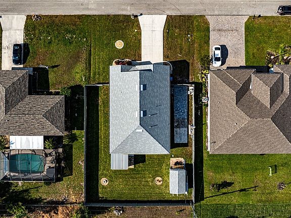 Come see this beautiful, spacious four bedroom home in a great neighborhood! On city water and sewer with all the assessments paid! No flood insurance required! As you enter the home through a screen entryway into the foyer and through a long hallway, it opens up to a spacious chefs kitchen with custom drawers and cabinets, walk-in pantry, and large island open to the dining room and living room. Four large bedrooms gives you plenty of room for guests or extended family. Owners suite has plenty of room with dual sinks, large walk-in closet, and both bathrooms have nicely updated showers. Exit through the rear sliders to relax and enjoy our beautiful weather in the extended lanai. Lots of upgrades in this home. Updated luxury vinyl flooring in all bedrooms (no carpets!). Freshly painted inside. New roof in 2023. Beautiful 10 X 16 workshop/man-cave/She-shed with electric and A/C. Huge backyard with a gas fire pit, and it’s fully fenced with 6’ privacy fencing and double doors that open to a 10 X 30 pavered pad to keep your boat/trailer/RV. Most furnishings negotiable. Come see this beautiful home and make it yours!