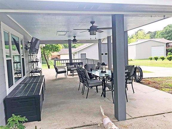 Meticulously maintained single story home w/wonderful water views.Located across the street from the Community Park, open water views are an everyday treat.Recently updated, this home offers the best of amenities inside and out.A large open cov'd porch greets family & friends and is very comfortable for most of the year.Property includes 3 bdrms(1 currently being used as Den). 2.5 manicured lots provide plenty of elbow room w/RV + jet ski Garage on R side and 2cG + attch 2CP on L side. 2cG is a great entertaining space w/granite bar,raised WB stove,Upper/Lower cabinets w/counter & sink mounted TV & stubbed for shower & toilet.Back yard is completely fenced for a designated play space for kids or furry family members.Tall RV garage has extra space for woodworking or jet ski storage.A brick fire pit is a nice place for burning yard debris or roasting marshmallows in the Fall. EE Bennett Memorial Park is located on R side of property adds another beautiful natural buffer. A GREAT RETREAT!