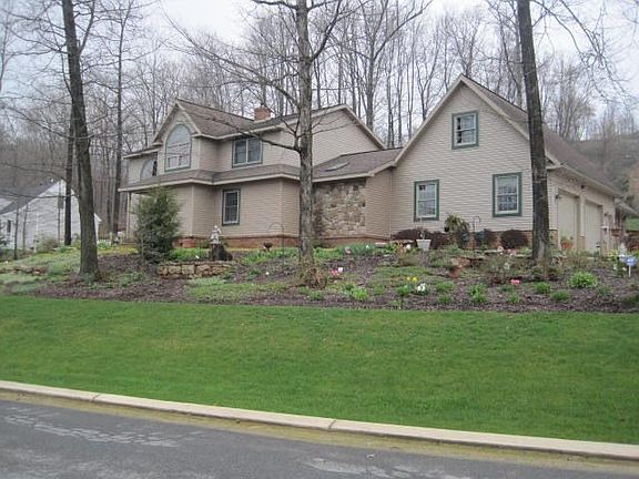3-4 bdrm, 3 full bath, stone FP, central air, custom oak trim, corian tops; loads of extras; on 1.45 wooded acres