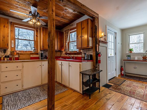 Come see this magical oasis just 5 minutes from Magic Mountain and 15 minutes from Stratton and Bromley. This home was built by the original owner with attention to detail with old barn board beams, hand done brick work on the hearth and many other features that add to the charm of this home. The home has an open living room, kitchen, dining area with 2 bedrooms a bath, laundry room and large closet off the main living space. The A frame portion of the home has a second floor that could be finished for another bedroom, playroom, yoga room-- options abound. There are 3 sheds to store all your tools and toys. A wonderful 4 season oasis with ski areas, ponds, lakes, hiking, relaxing on the deck, shopping in Manchester and Chester. This home has been loved for many decades and the beautiful perennials and mature flowering trees are a testament to this! OPEN HOUSE SATURDAY, MARCH 11, FROM NOON TO 3 PM