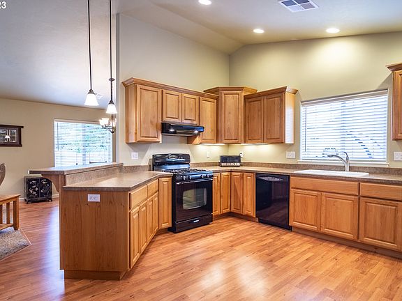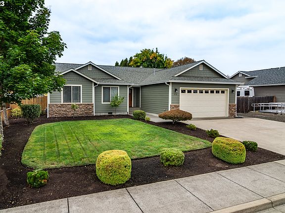 OPEN HOUSE SUNDAY 1-3! Come see this immaculate inside & out, one level home that was just freshly painted! You'll appreciate this better than new home in a quiet neighborhood with no neighbors behind you. Inside you'll find an open floor plan with vaulted ceilings, laminate flooring, abundant kitchen cabinetry & counter space plus breakfast bar & a large pantry. You'll love the large primary suite with generous walk-in closet & large bath featuring a walk-in shower. The attached 2 car garage is finished & includes a utility sink & exterior access. Relax on the covered back patio & enjoy the views & privacy of no rear neighbors. Both front & back yards have sprinklers systems & are fully landscaped for low maintenance, plus gated RV parking with concrete pad, tool shed for storage & garden area. There's something for everyone here! Local residents enjoy the short drive & easy access to a boat launch on the South Umpqua River, numerous award winning wineries to tour & only an hour drive to visit the Oregon Coast. Make this your home today!