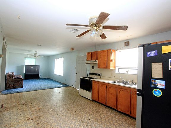 Simple and solid 2 bedroom 1 bath home on a double lot in the X flood zone!! With minor cosmetic changes this home is near move in ready. The open concept living area optimizes space, while the attached carport provides opportunity for expansion. Home is located in a quiet area inside City limits and only moments to the Chipola River or a short drive to area beaches! Home is on public water and sewer, plus has a well, perfect to water the garden or wash the car. Enjoy fresh fruit from the many flourishing trees on the property. This home wont last long, scheduled your showing today!!