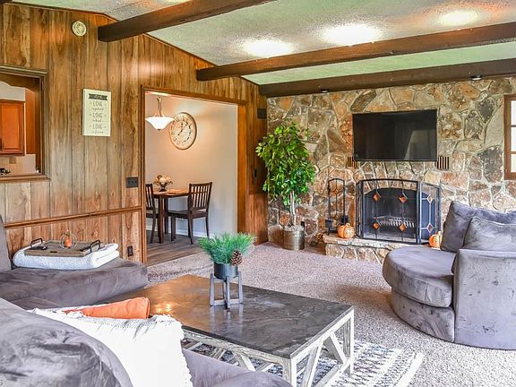 Call or text Listing Agent Jose Medina at 330-605-9185 for a private showing. Gorgeous 2 bedroom, 2 full bath brick ranch with a finished lower level! Whip up your favorite recipes in the updated eat-in kitchen with stainless steel appliances, tile backsplash, new luxury vinyl flooring and a serving window to the great room. You'll love spending time in the stunning back great room with cathedral ceilings, wood beams, a stone fireplace and 2 walls of windows overlooking the backyard. A second woodburning fireplace can be enjoyed in the bright and cheery front living room! Down the hall, there are multiple closets, 2 bedrooms and an updated full bath with tile flooring, beadboard accents and a jetted tub. The master bedroom is quite large and offers 2 closets. Enjoy extra living space on the finished lower level with an L-shaped rec room, a dry bar, a full bath, cedar closet, laundry room and storage. 2-car attached garage that includes a huge storage room with separate exterior access - could be a home office, studio or workshop! Tons of room to run and play in the nicely-sized backyard with a covered patio. Updates include windows, plumbing, electrical, new blinds, freshly painted interior and a new front door. Wonderful condition at this move-in ready home! Don't miss out!
