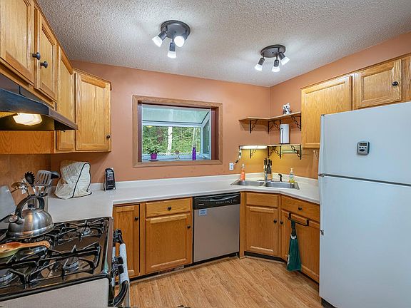 LOCATION! LOCATION! LOCATION! Nestled between Eagle River & Three Lakes is this 2BR/2BA home with large gathering rooms upstairs, another one downstairs, a large kitchen/dining area & TONS of storage throughout! The lot is level, perfect for kids of all ages & the 1200sf 2-door garage is FANTASTIC! The large door will fit a motor home or camper. The fenced dog run is great for 4 legged family members but isnt anchored so can easily be moved if not needed. The main floor bedrooms spacious walk-in has laundry facilities, with additional hookups in the basement. The open, level yard is fantastic for playing or gardening & when evening comes, enjoy time around the campfire. Surrounded by woods, it feels private & secluded. Lakes for fishing, boating & other on-water adventures as well as trails for hiking, biking, ATVs & snowmobiling can be found minutes away in any direction for year-round fun making this the perfect spot for your Northwoods retreat. Call today or miss out tomorrow!