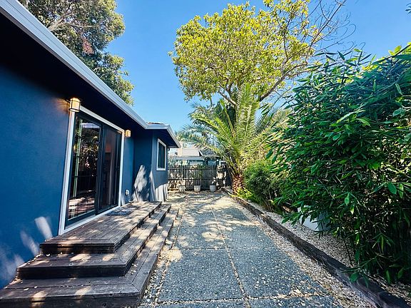 - Exterior features: 1 driveway parking spot, 5 mins to Alameda Ferry to SF, 7 mins to Shopping Center with Target and Safeway, Awesome Alameda location in the West End Neighborhood, Beautiful kitchen with Stainless Steel Appliances, Bonus Extra Office/Storage Building behind the house, Frech Doors open from Living room into the Private Landscaped Backyard, Less than a mile to the beach!, Near schools and dining and shopping, Open Kitchen and Living Room Floorplan, Remodeled bathroom with shower over tub, Totally Remodeled with Luxury Finishes