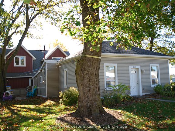 Two bedroom, one bathroom bungalow with eat in kitchen, livingroom features gas fireplace, foyer, pantry, 100 amp service and new roof in 2025. Double car garage has steel diamond shingles, 4 dormers, great potential for 870 sq ft residential development on upstairs garage. Large garden and shed, on corner lot. Beautiful clean home a must see. Close to playground, arena and schools.