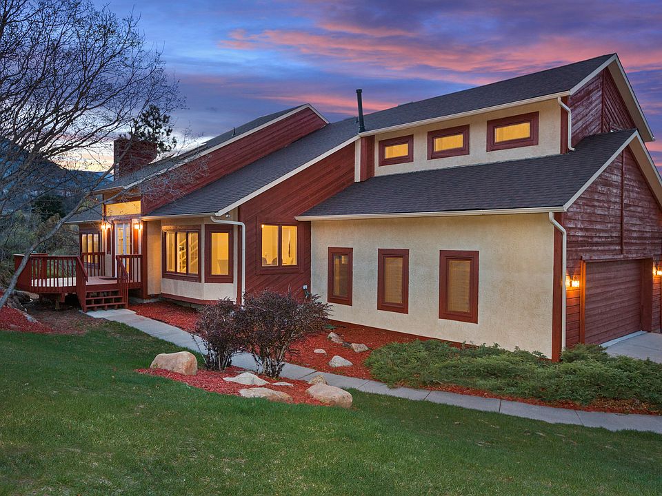Welcome Home to this gorgeous Broadmoor Bluffs home, nestled on nearly 0.5 acres. From the moment you walk through the French entry doors, you are greeted with modern farmhouse vibes, vaulted ceilings, a designer chef's kitchen, plenty of built-ins, and views for days! Upstairs, you will find a spacious & luxurious master suite and stunning 5-piece bath, in addition to 2 extra bedrooms and a full bath. Venture to the walkout basement where you will find another bedroom and bath, in addition to a huge entertainment area. Views of Cheyenne Mountain Resort, the entire city of Colorado Springs, Cheyenne Mountain, and more! Located in the award-winning District 12 area, and just minutes from Fort Carson, Cheyenne Mountain Air Force Base, hiking, biking, shopping, and more! Don't wait- this one will not last long!