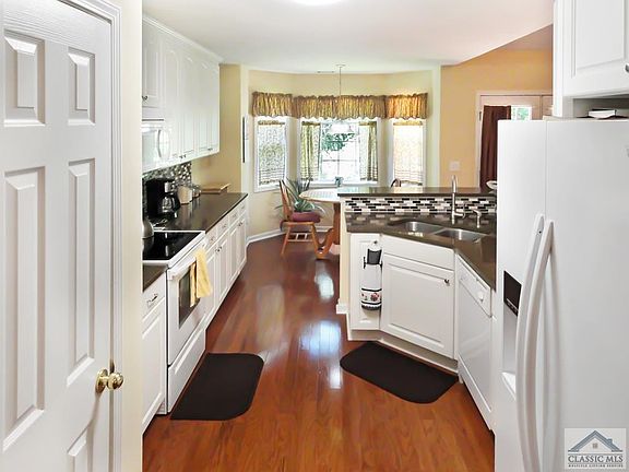 Come and see this well maintained home and botanical garden landscape that is amazing. You won't regret seeing this FINE property. Step in the front door to beautiful hardwood floors throughout most of the home. This 4 bedroom and 2 bathroom split home plan. The spacious Great Room has a vaulted ceiling and fireplace with windows providing natural light and is open to the Eat-In Kitchen. The kitchen was updated with granite counter tops, tile back splash, extra cabinets that extended to the ceiling. Lots of counter and cabinet space. Eat at the breakfast nook and enjoy views outside. The Dining Room is off the Kitchen. The Master Bedroom is on the left side of the home that has a trey ceiling with a fan that provides for a private oasis with two walk-in closets. The Master Bath has a double vanity, separate shower, and garden tub. The other three bedrooms are on the other side of the home with a guest hall bath. The front porch is covered. The back deck is very private over looking a backyard that has a privacy fence with a butterfly garden. The landscape was chosen for flowers, food, foliage, shelter and privacy for pollinators, birds and people . The land to the left of the driveway is apart of this property with amazing plants, trees, shrubs and Koi pond with a waterfall, bench and path through the garden! There is a dog park, tennis courts, walking or running trails at Southeast Park is just 5 minutes from the home. Convenient location to shopping and within 10 minutes to UGA.