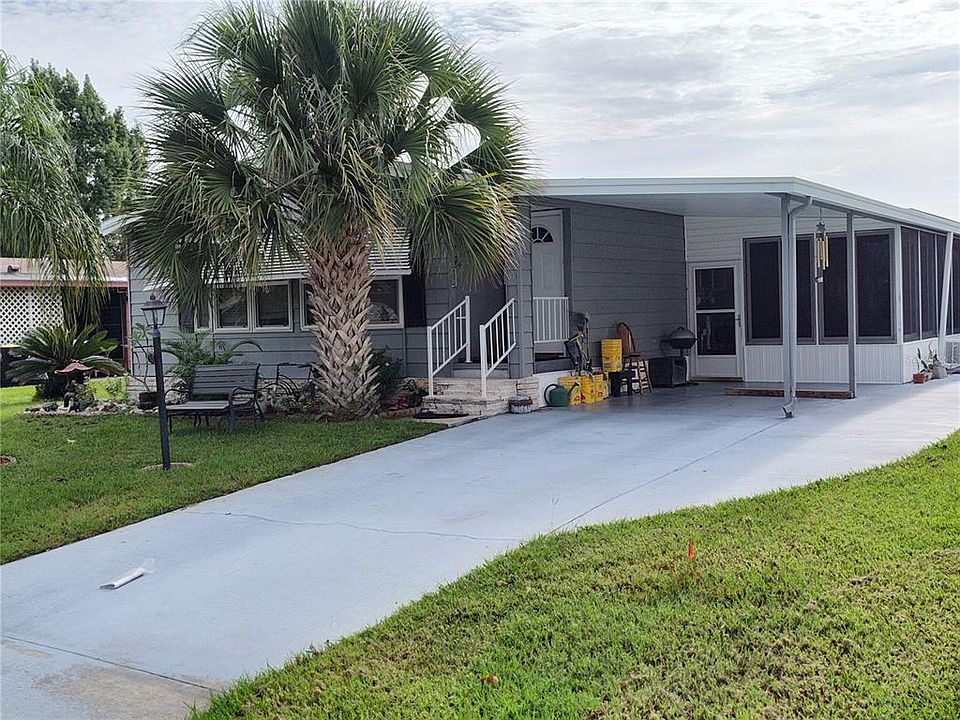 If you are looking for a winter retreat or a year round home in Polo Park this is the right choice. Polo Park is a 55+ community that is 6 miles from Disney! Easy access to Orlando and Tampa makes this a tremendous location. The roof is being replaced in August 2023, the house has been replumbed. The air conditioner is approx 3 years old. Appliances have been replaced in the last 2 years. This beautiful home is being sold partially furnished. All the flooring in the house is engineered hardwood. The man cave has a ceramic tile floor and its own air conditioner. All window treatments will stay with the house including the new blinds. There is storage galore with this house. You will not be disappointed with a private tour of this house.