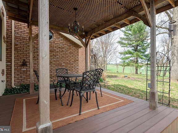 Experience utter peacefulness and serenity in this one-of-a kind home, situated on almost 7 acres, which includes a picturesque pond. Not in love with the cookie cutter style of so many homes today? Then this unique Tuscan inspired 2-story will be perfect for you! The first thing you'll notice is the impressive courtyard, featuring a fountain, ceramic tile floor, and striking hardwood ceiling, that leads to the covered brick entryway. Inside, the roomy foyer flows to a grand living & dining area with beautiful hardwood floors. This room boasts a wood fireplace with impressive stone surround and hearth, lighted beams, and an open staircase with wrought iron railings. A full glass panel patio door, flanked by open sidelights and transom, leads to one of the many outside seating areas. Beyond this room you will find the perfect spaces for all of your entertaining and gathering needs! The spacious Dellwood custom kitchen includes built-ins and plenty of custom cabinetry with pantry and built-in wine storage, an island with cooktop, and a Jen-Air double oven. The kitchen with eat-in dining area, is adjacent to the family room. These areas feature ceramic tile flooring and two sets of French doors, making it easy to enjoy the outdoors and beautiful views this home has to offer exit one set that leads to a more secluded patio setting, or the other that leads to both a deck and pergola areas. If the weather isn't cooperating, enjoy a cup of coffee in the charming sunroom, which offers plenty of windows to still enjoy the great views! Completing the main level is a large study, perfect for office space, a half bath, and a wonderfully functional laundry room. Upstairs, you'll find the primary bedroom which has an attached bath with soaking tub, a fully renovated shared bath, and two additional bedrooms. All of the bedrooms provide balcony access with more views of the north side of the property. The lower level with walk-up offers two spacious rooms that provide numerous possibilities! Plus, two large storage areas. Attached two-car garage, plus detached 5-car garage with additional storage. Plenty of space for a workshop if desired!
